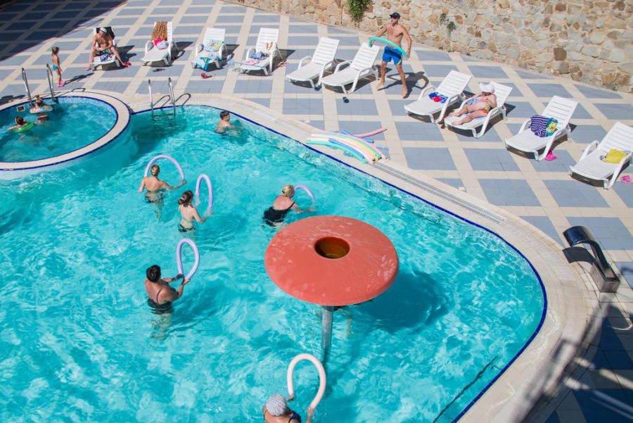 Курс лечебных процедур включает в себя принятие целебных и гидромассажной ванн, соляную пещеру, посещение кабинета массажа. Заболевания покинут гостей, благодаря аромотерапии, фито-хромотерапии. Местом для 3-разового приема сбалансированной пищи (система «шведская линия») является шикарный ресторан.
