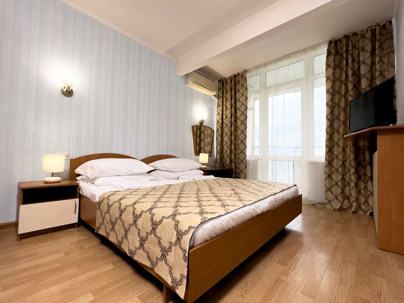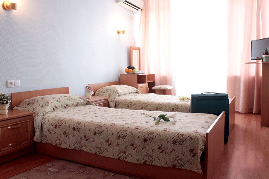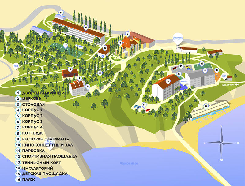 Курорт находится между Ялтой и Алуштой. Данная земля Крыма является целебной, благодаря воздействию на организм морского воздуха и лучей солнца. Санаторий включает в себя 4 спальных корпуса, в которых находятся номера различных категорий. В каждом номерах современная мебель и необходимые электроприборы, а из окон номеров можно бесконечно любоваться горами и морем. Туалетные комнаты оснащены необходимой сантехникой, феном и полотенцами.