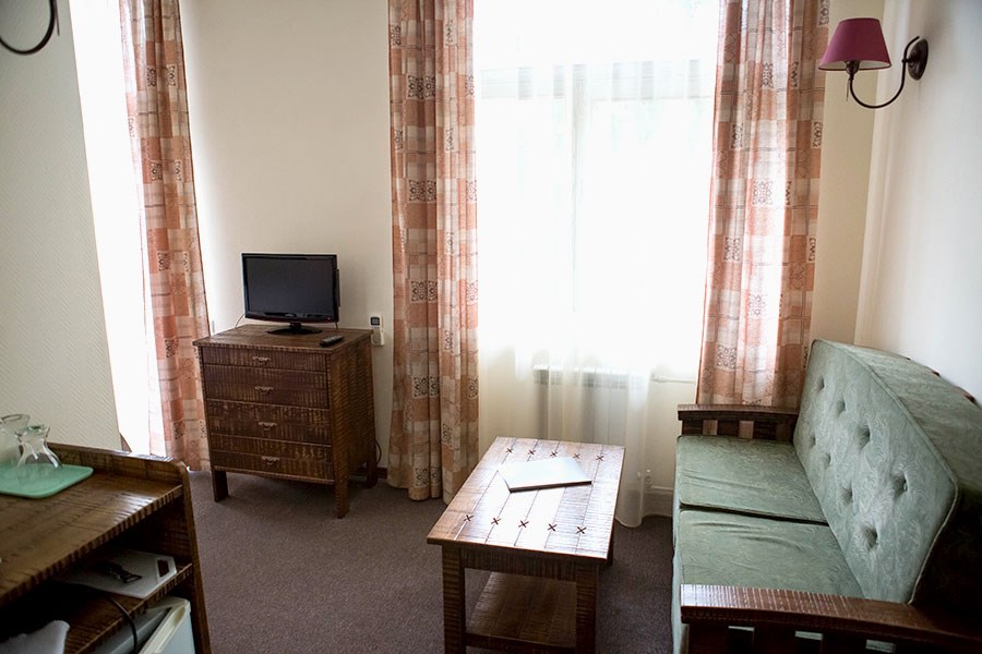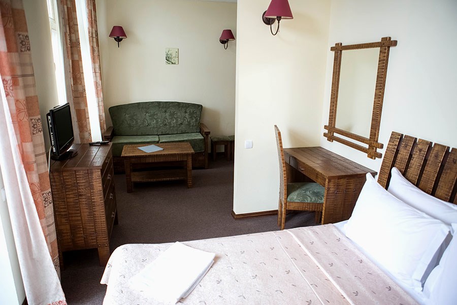 Двухместный однокомнатный номер с балконом. Благодаря своему удобному расположению в парке отдыхающие в полной мере могут насладиться тишиной и лечебным воздухом.