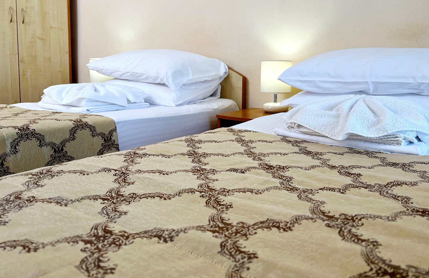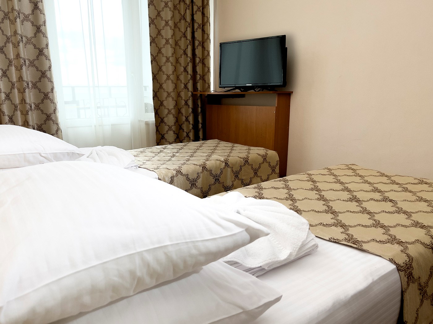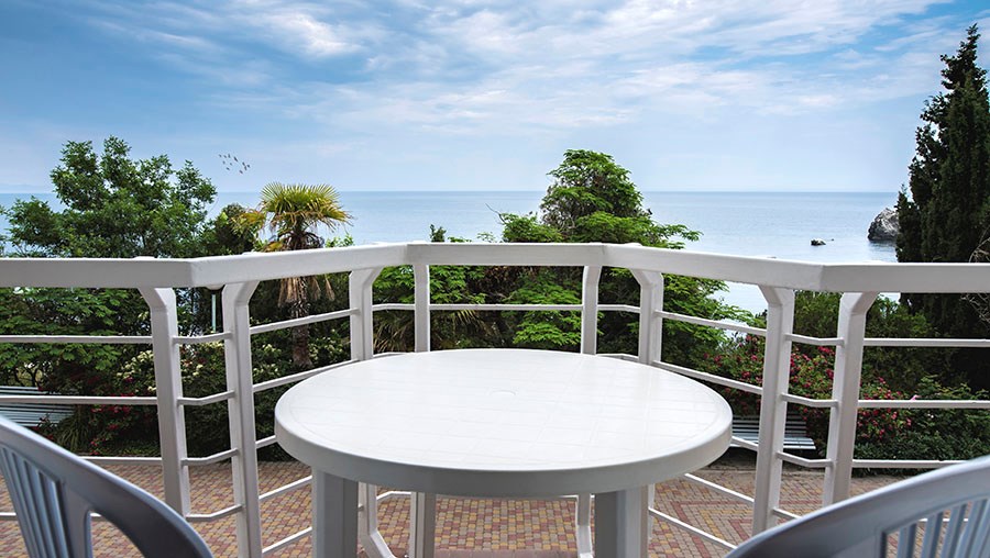 Двухместный номер с видом на море оборудован всем необходимым для отдыха - кондиционер, телевизор, холодильник.
