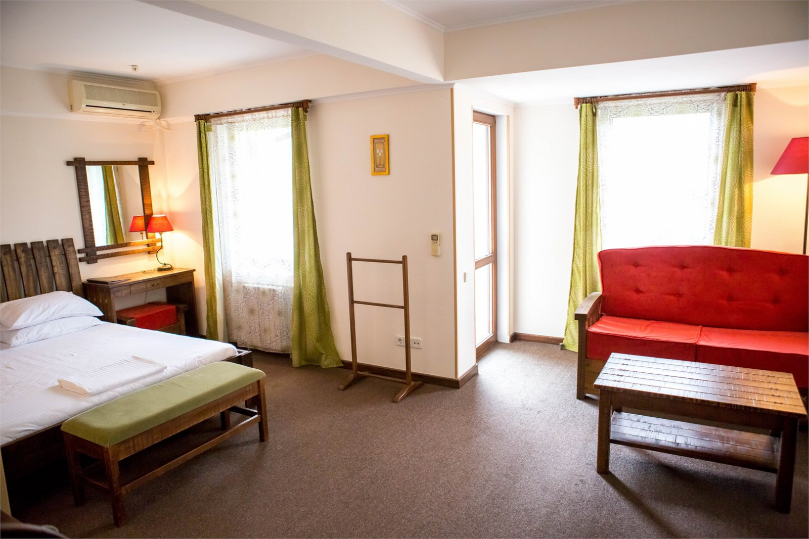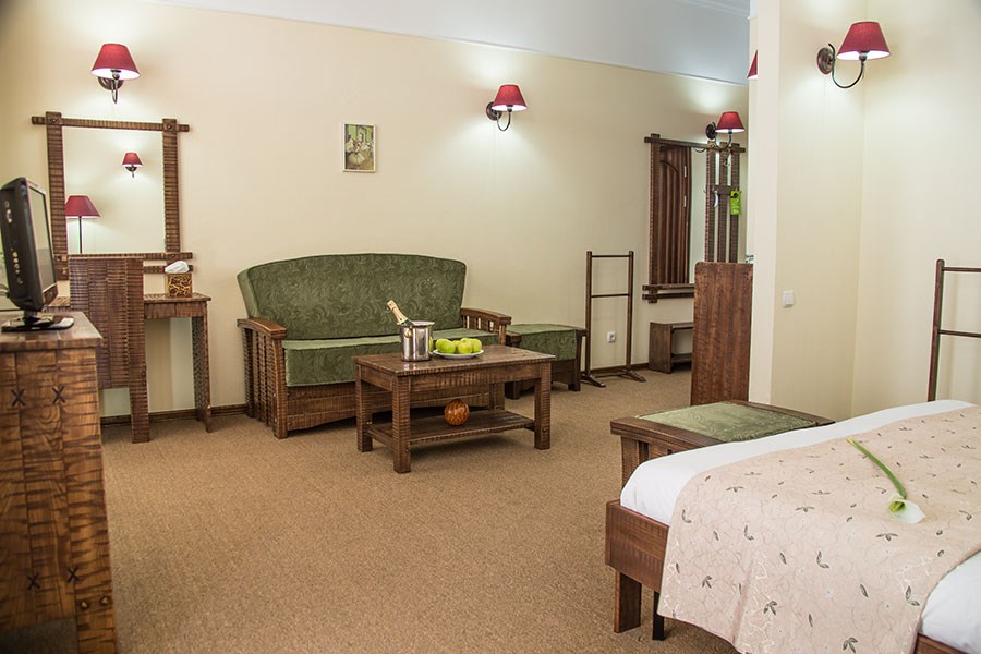 Номер с одной большой общей зоной. Современные и просторные. Из номеров верхних этажей – незабываемый вид на море, из нижних - на тенистый красивейший парк.